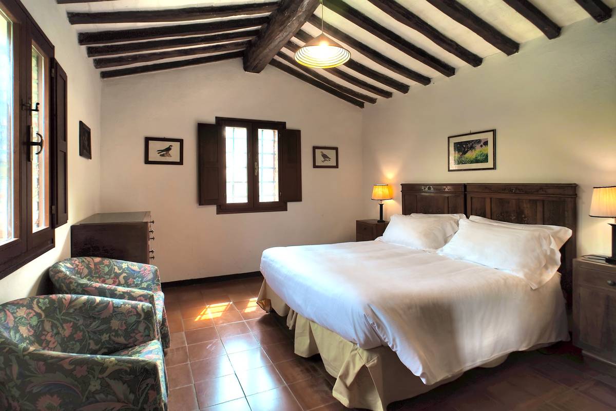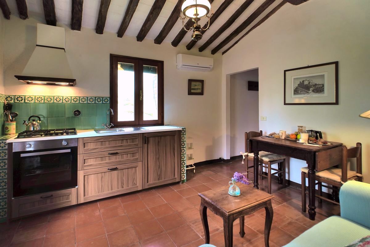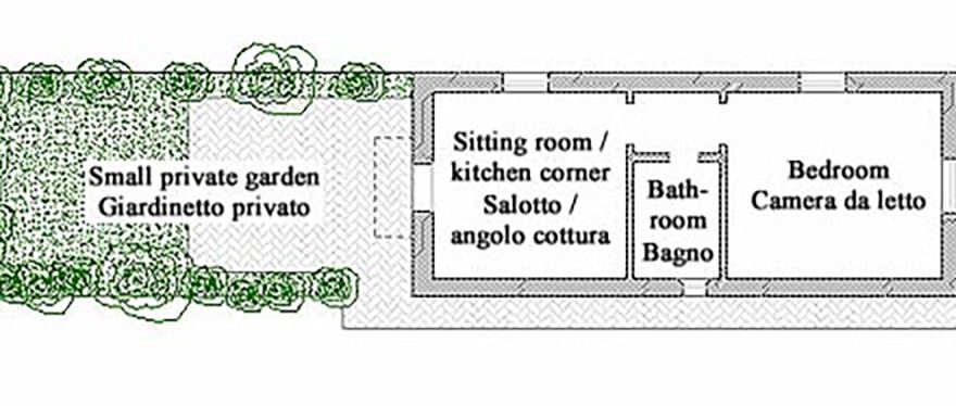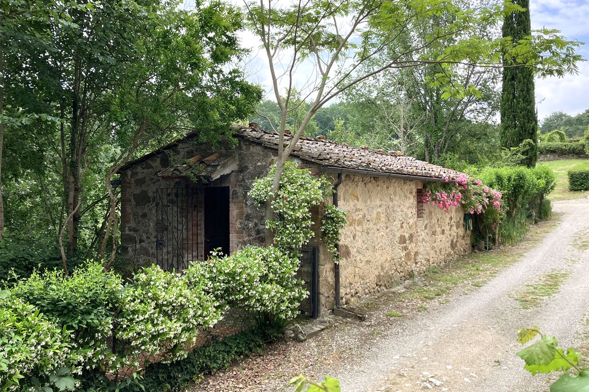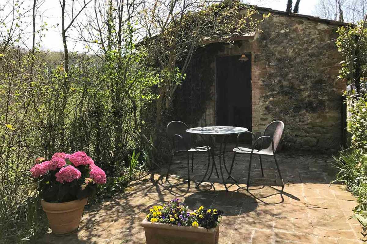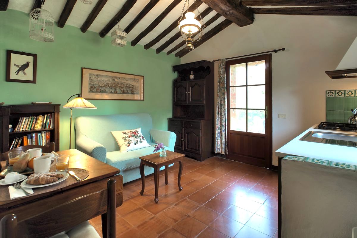 La Voliera is a 1-bedroom cottage just outside the walls of the castle; its windows look down the hill to the woods. It has a small enclosed garden and adjacent parking.
