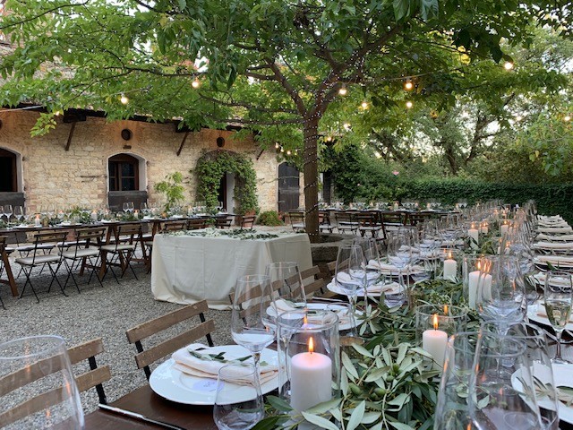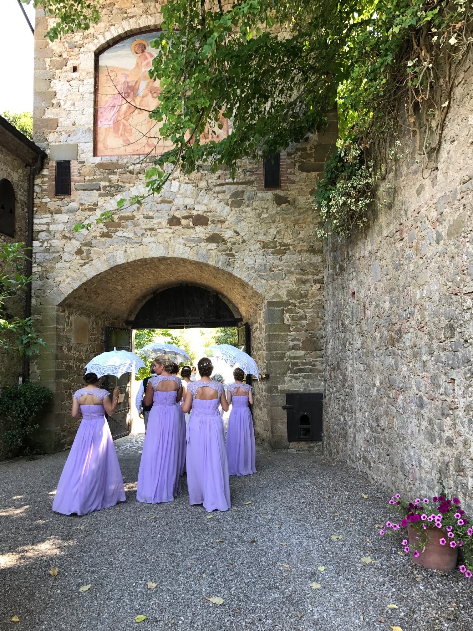 Our wedding was over a year in the making, and when it all finally happened, it was beyond anything we'd ever imagined! When we first found Montalto, I was in love but I thought there was no way we could afford it.My then-fiance thought we should at least ask, and from the initial communication Chiara was friendly, helpful and accommodating. We put in our reservation and booked a flight a few weeks later to see it for ourselves. Because we were celebrating a Catholic wedding, there was some additional paperwork involved, so on Chiara's recommendation we booked Elena at Italian Wedding Designer to be our planner. These two are an absolute dream team. During our short trip in 2017, we stayed in La Voliera, a small private villa on the grounds and traveled all over the Tuscan countryside trying food from various caterers and choosing the decor for the wedding. Through this year (2018) we continued to communicate with both Chiara and Elena, and they made the planning process easy and painless. Finally, when it was time to arrive, everything happened so perfectly that we are still in shock. The first event we hosted was a pizza party, and because it was later in the year (end of September), we held it indoors in a lovely space under the San Giovanni/Loggia villa. With no effort from us at all, the space was set up and there were candles outside leading the way. We opted to rent a speaker system for the weekend rather than hire a DJ and it was the best decision! We had just under 70 people at our wedding, and our family and bridal party stayed in the castle with us. The day of was truly unforgettable. I spent most of the morning preparing in La Loggia, so I did not witness the transformation of the courtyard, but guests were coming in and out letting us know that the magic was happening. When the time came for our ceremony, I was stunned by how gorgeous the courtyard looked and remembered how romantic the chapel was. The doors opened and I could not stop smiling. Afterwards, cocktail hour was on the terrace outside of the Vescovo, overlooking the courtyard. We were able to greet our guests and enjoy a bit before being whisked away by our photographer, but the overhead view of the dinner setup was beautiful. As the sun set and the lights came on, it truly looked like we were in a magical place. Once it was party time, everyone danced the night away in the granary and the bartender was excellent. The next day, our guests couldn't stop reliving their favorite moments and even now, a few weeks later, we receive compliments daily. Truly unforgettable!